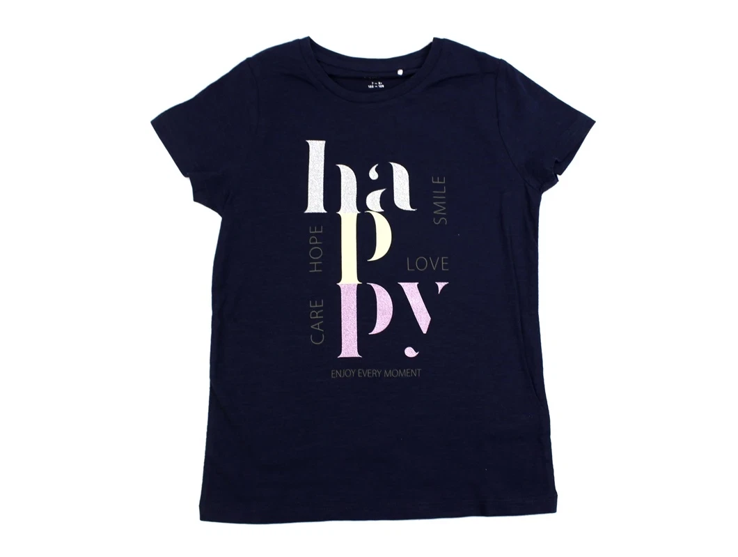 Skøn t-shirt i farven dark sapphire med tekstprint og glitterdetaljer fra Name It.
