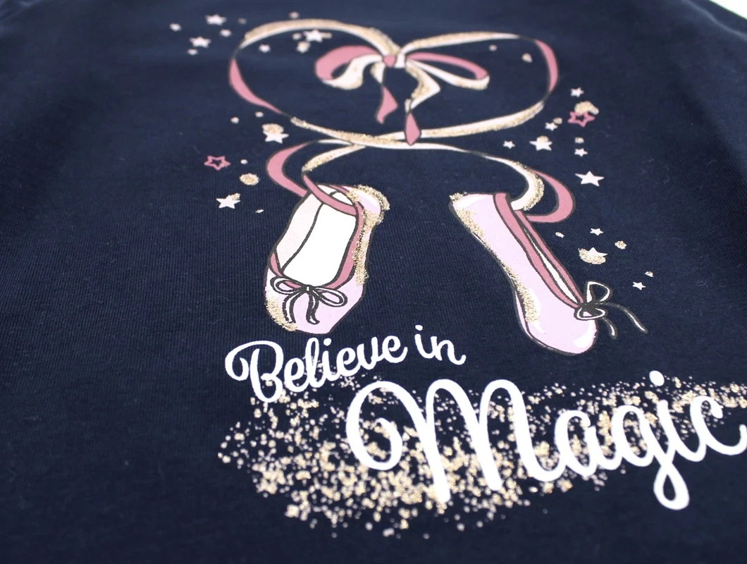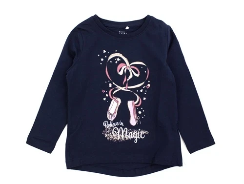 Langærmet top i farven dark sapphire med print og glimmer fra Name It.
