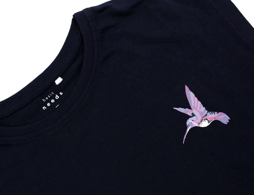 Top i farven dark sapphire med lille fugleprint fra Name It.