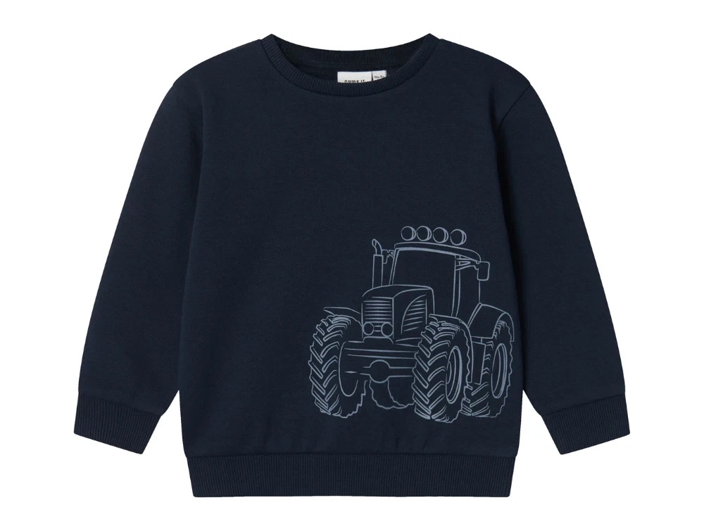 Sweatbluse i farven dark sapphire med traktorprint fra Name It.