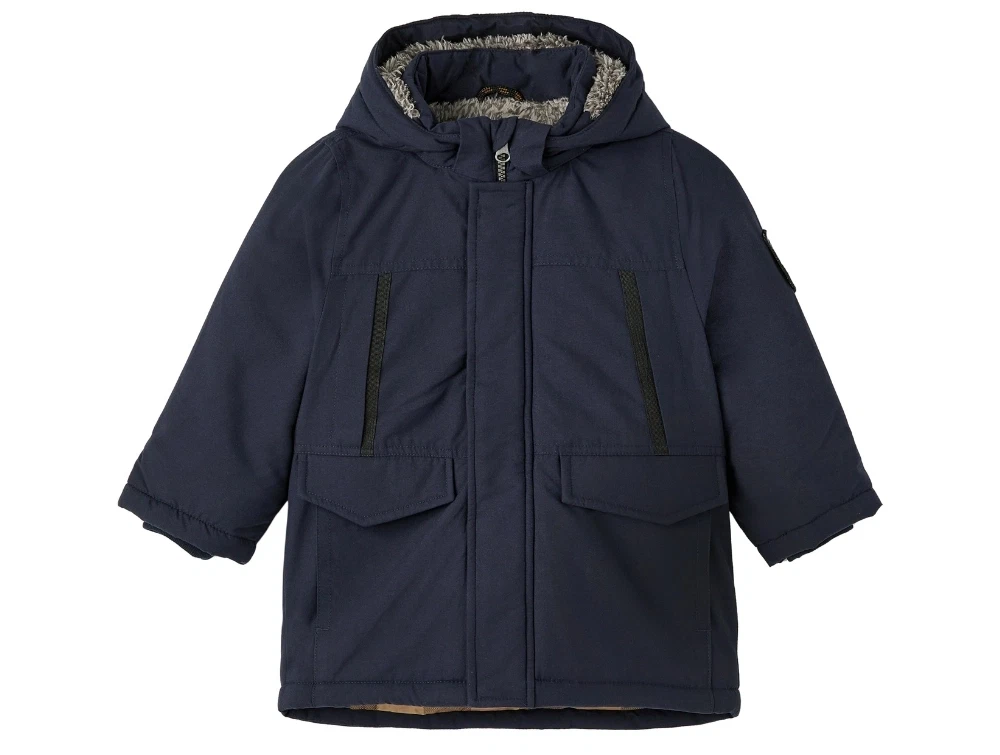 Vinterjakke i farven dark sapphire med aftagelig hætte med trykknapper fra Name It.