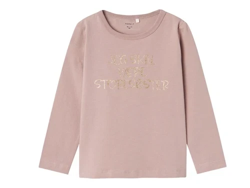 Top i farven deauville mauve med guldglitter tekstprint fra Name It.