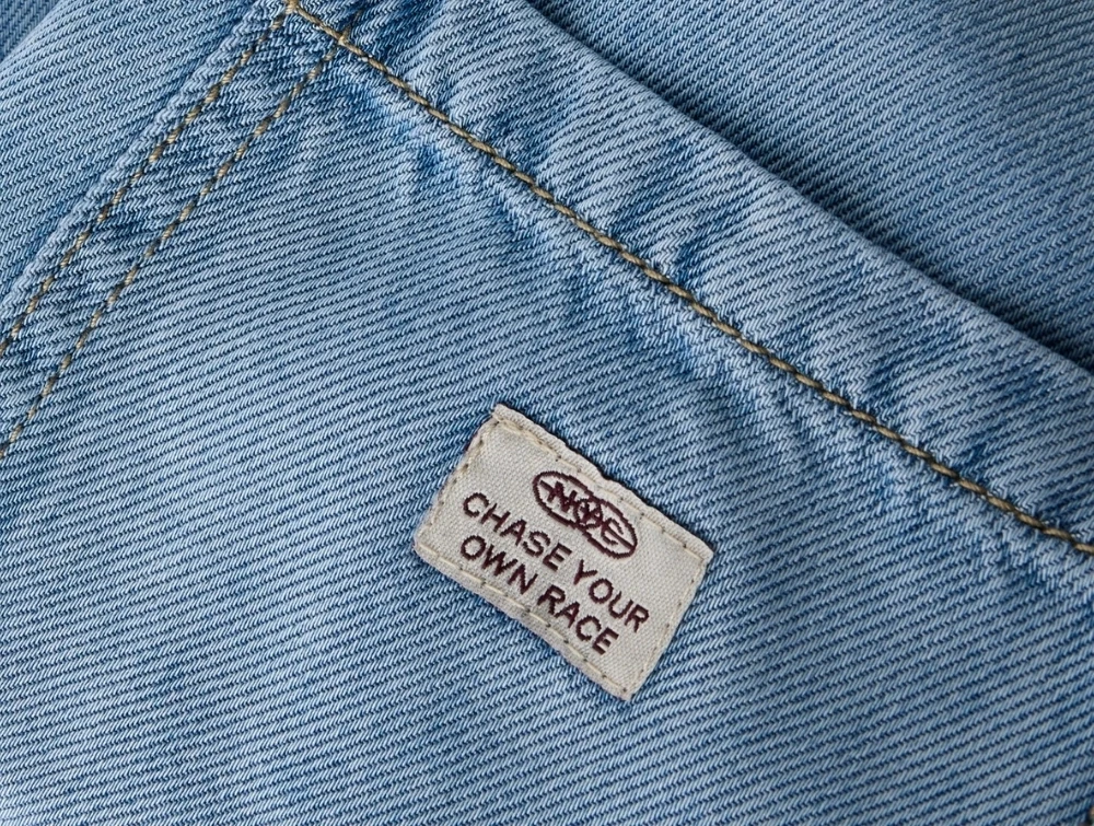 Designet har skrålommer foran, baglomme og en lille labeldetalje. Den lette vask og de diskrete slidmærker giver et klassisk denimlook.