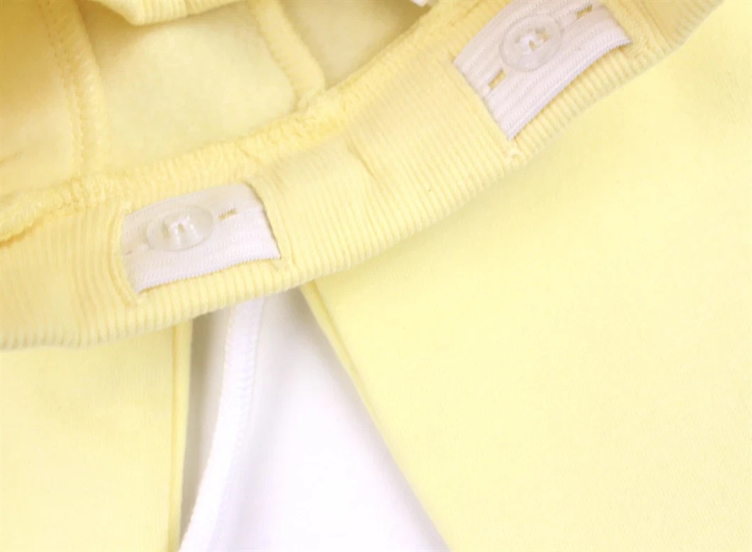 Bukserne har to lommer, bindebånd og justerbar elastik i linningen.