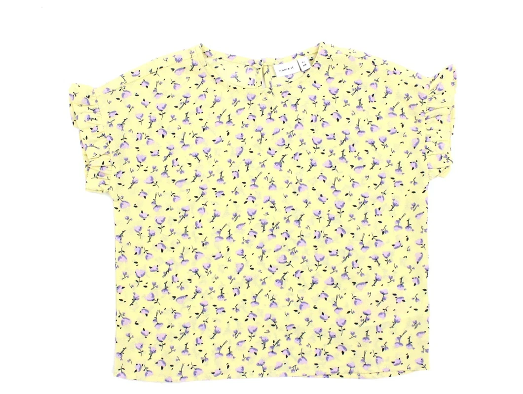 Top i farven double cream med blomster og flæseærmer fra Name It.