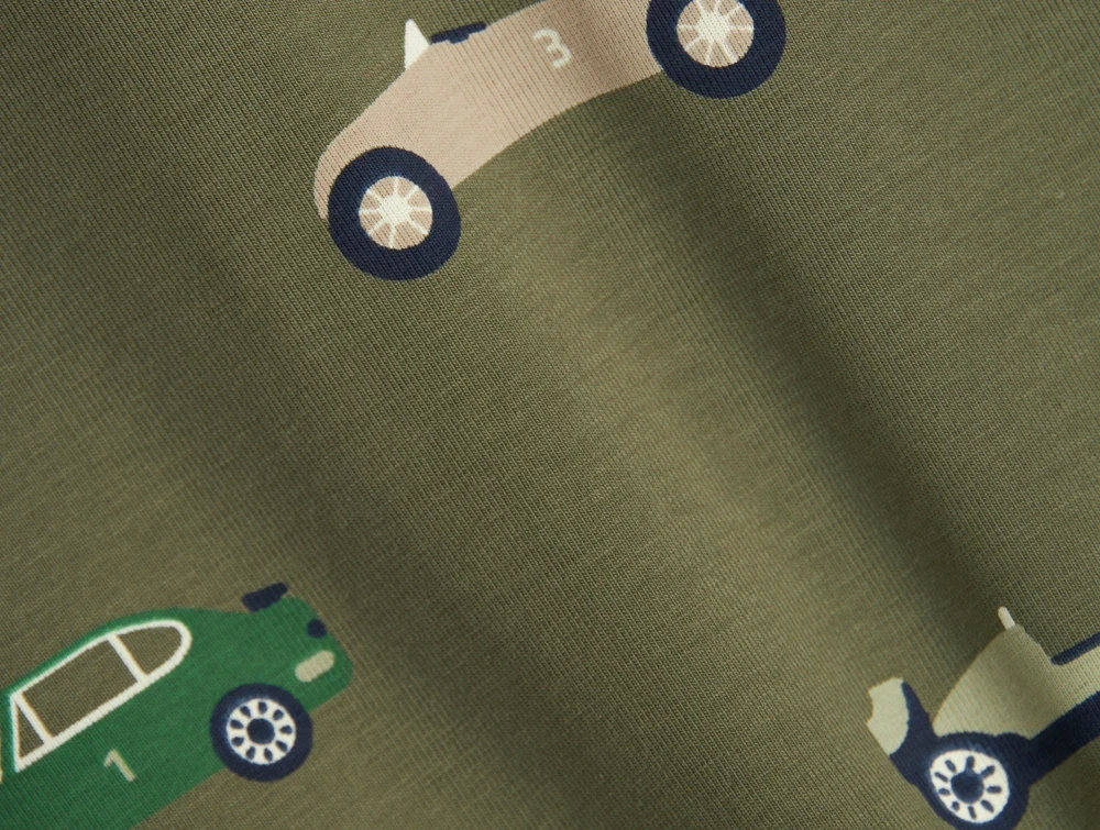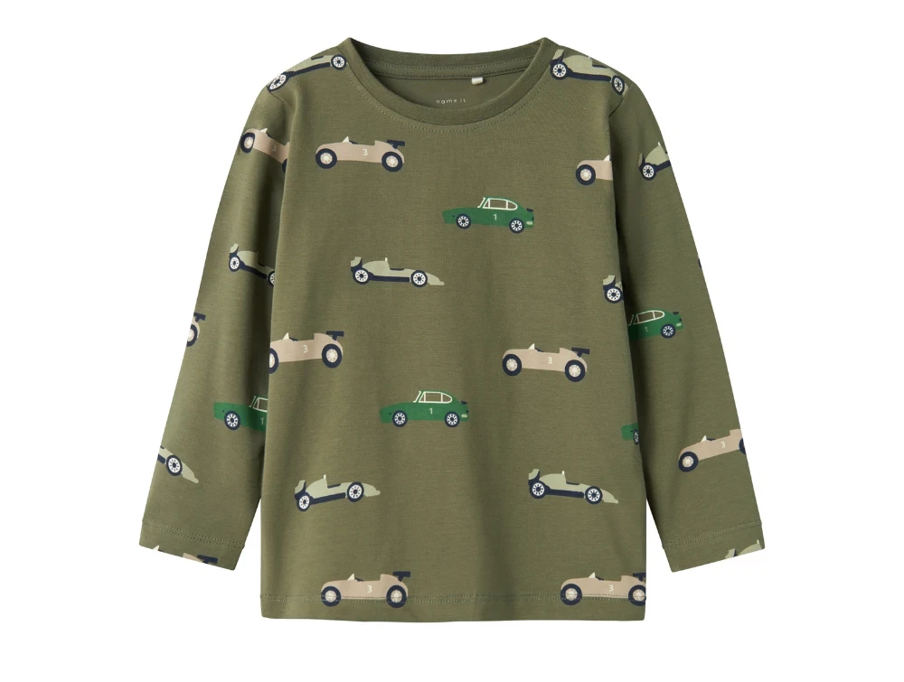 Langærmet top i farven dusty olive med biler fra Name It.