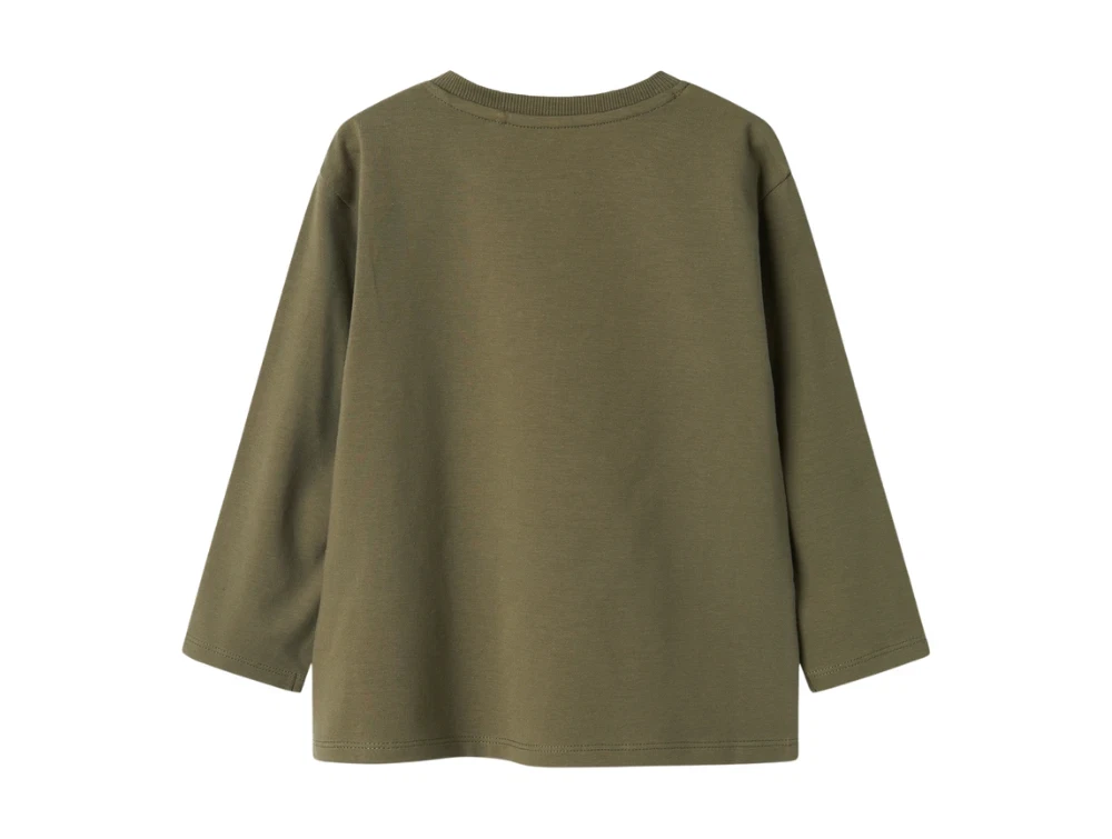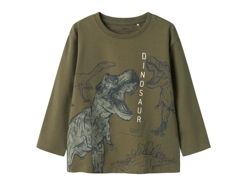 Langærmet top i farven dusty olive med dinoprint fra Name It.