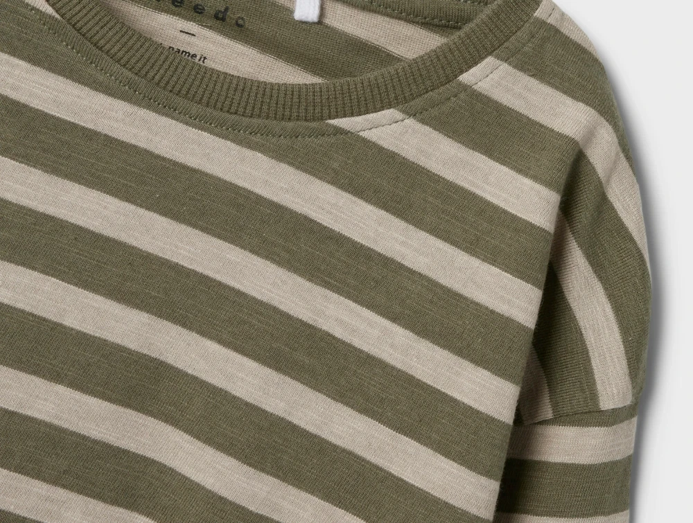 Stribet top i farverne dusty olive og pure cashmere fra Name It.