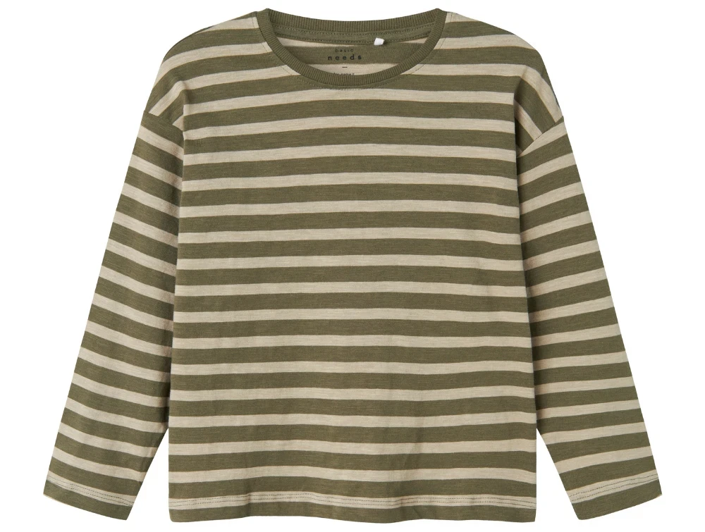 Klassisk langærmet med striber i farven dusty olive fra Name It.