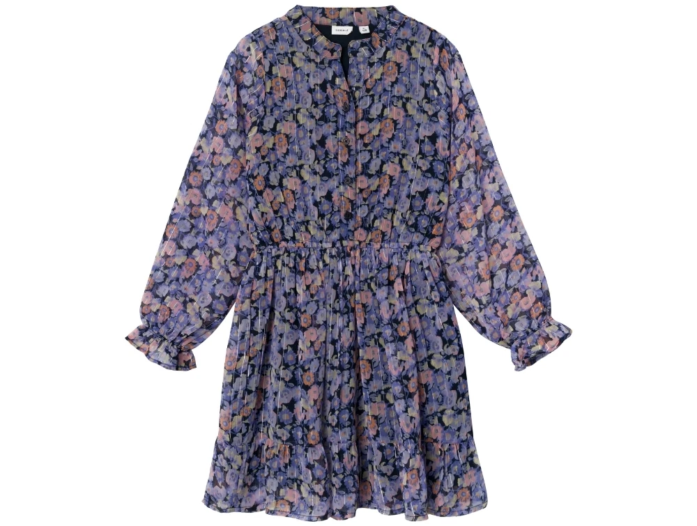 Kjole i farven easter egg med sølvtrådsdetaljer fra Name It.