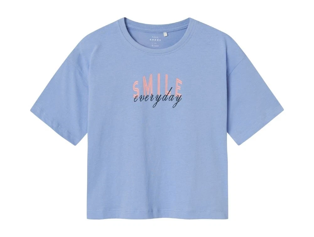 2-pak boxy t-shirts fra Name It i lyseblå og råhvid med blødt print.