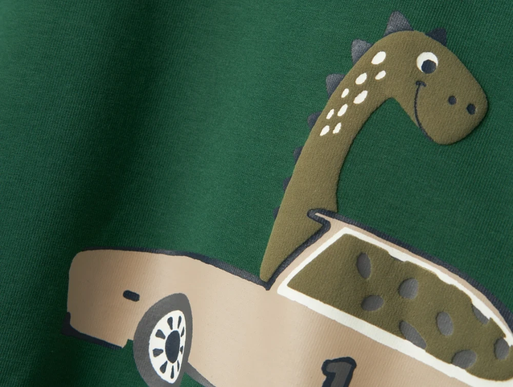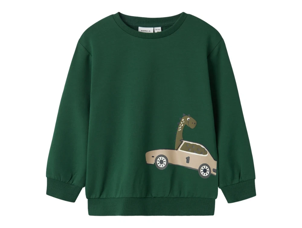 Sweatbluse i farven eden med dinoprint og bil fra Name It.