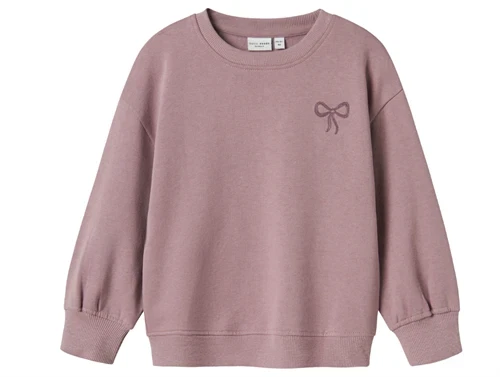 Sweatbluse i farven elderberry med lille sløjfebroderi fra Name It.