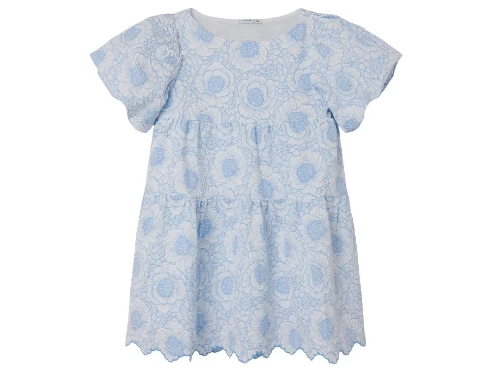 Find det perfekte festtøj til dit barn med fine partystyles, der passer både store og små. Kjolen er i vævet kvalitet, så den har et enkelt krydsmønster og en let tekstur i overfladen. Det giver kjolen et voluminøst udseende med en flot drapering og et klassisk look.
