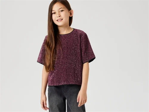Skøn festtop i farven fandango pink med pailletter fra Name It.