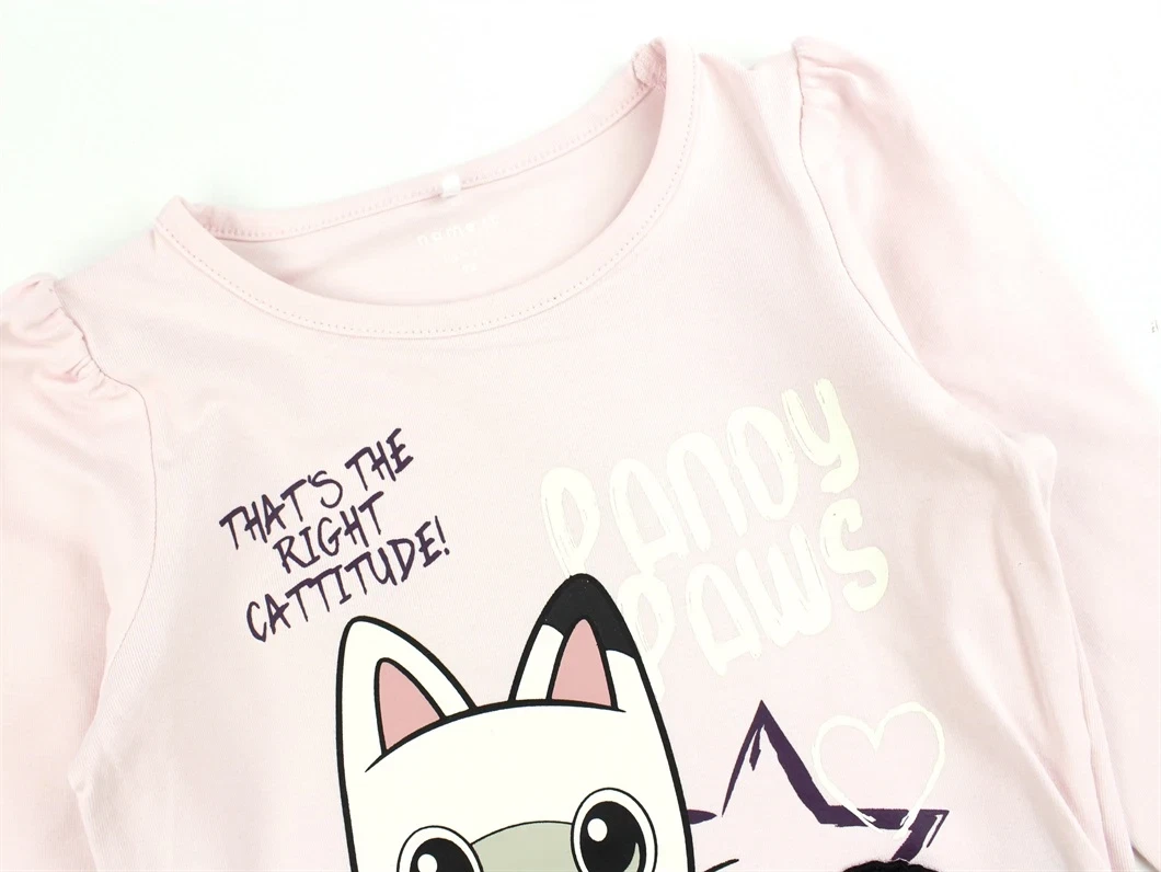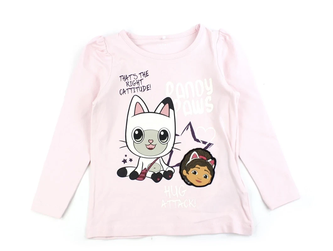 Langærmet t-shirt i farven festival bloom med Gabby's Dollhouse-print, rynker på skuldre og Gabby applikation fra Name It.