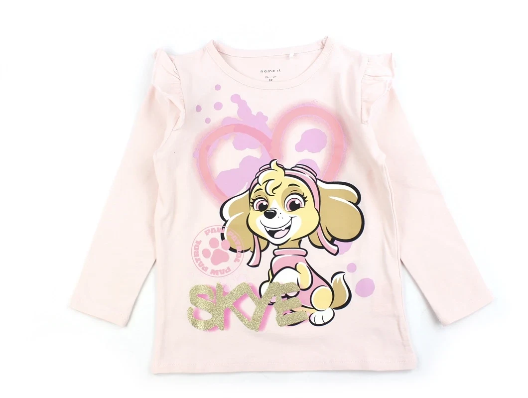 Langærmet t-shirt i farven festival bloom med Paw Patrol-print, flæser og glimmer fra Name It.