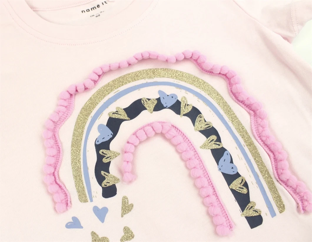 Kortærmet t-shirt i farven festival bloom med regnbue-print/applikation fra Name It.
