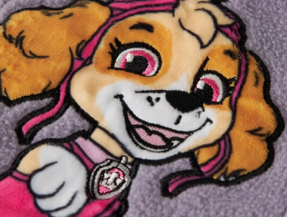 Cardiganen har almindelig pasform med høj hals og lynlåslukning foran. Rynkdetalje ved taljen giver en let vidde, og det broderede Paw Patrol motiv skaber et tydeligt blikfang.