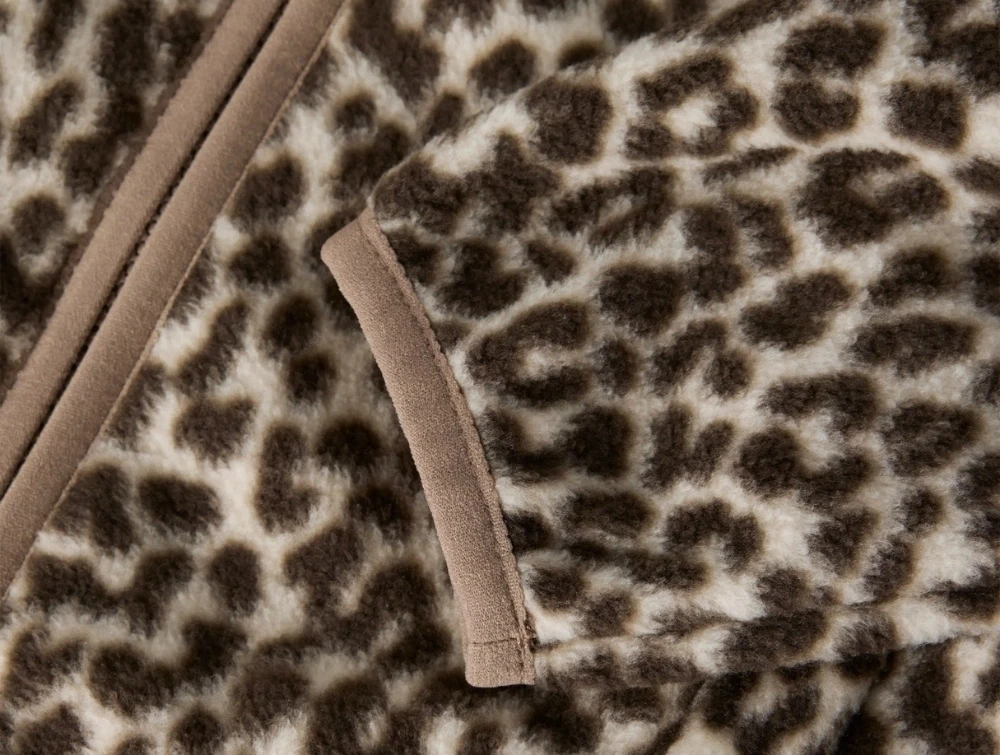 Fleecejakke i beige og brune nuancer fra Name It med allover leopardprint.