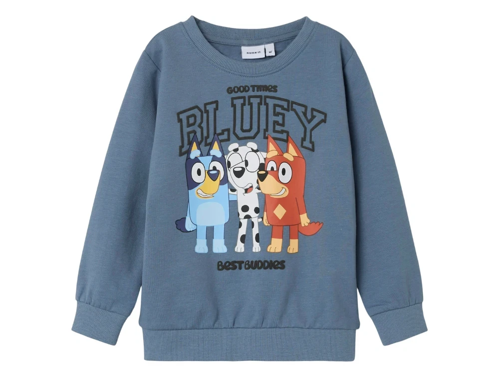Sweatbluse med Bluey-print i farven flint stone fra Name It.