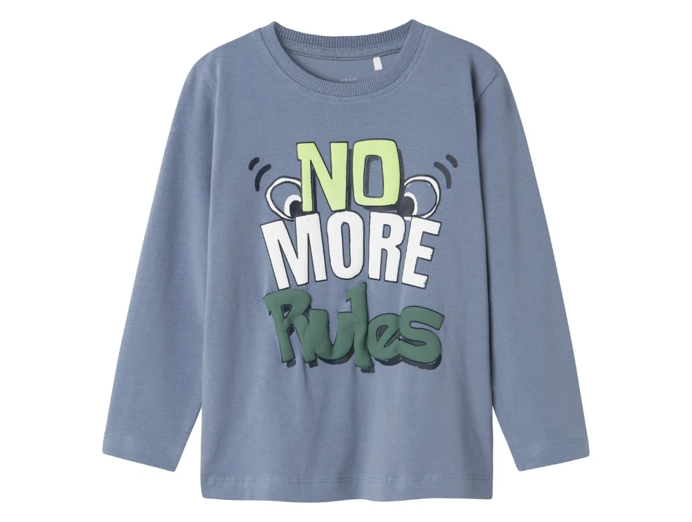Langærmet top/bluse i farven flint stone med gummiprint fra Name It.