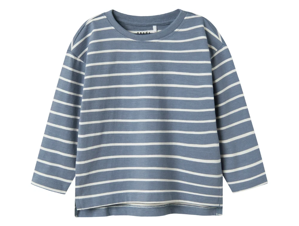 Stribet langærmet top/bluse i farven flint stone fra Name It.