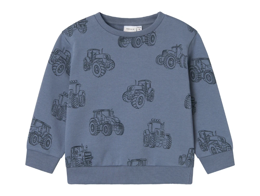Sweatbluse i farven flint stone med traktorprint fra Name It.