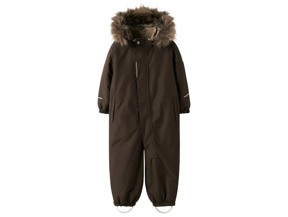 Flyverdragt i brun nuance (delicioso) fra Name It med aftagelig hætte og syntetisk pelskant.