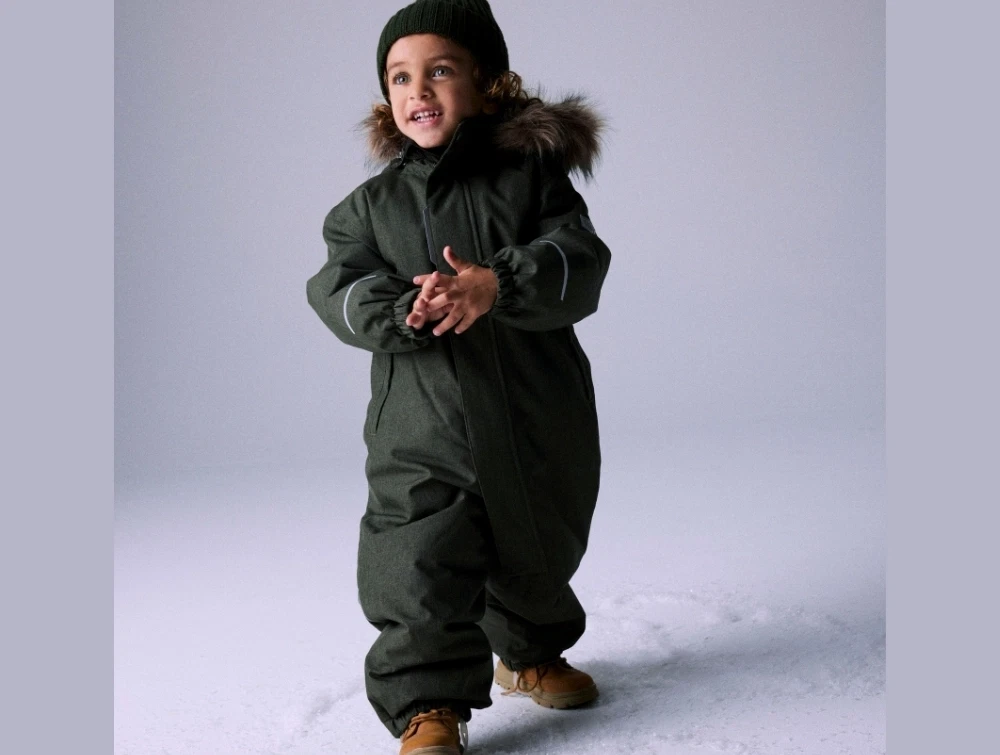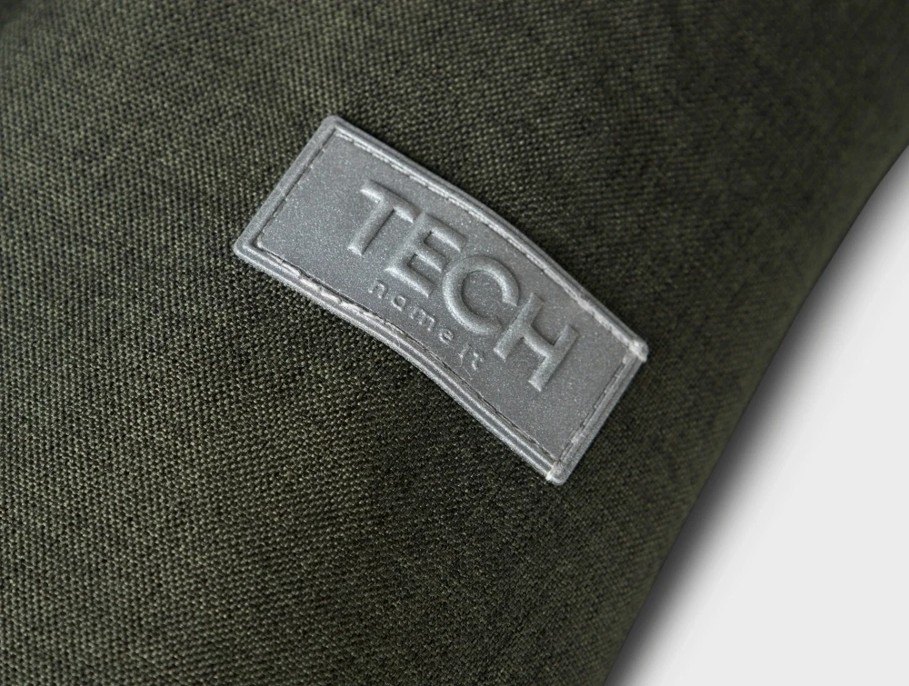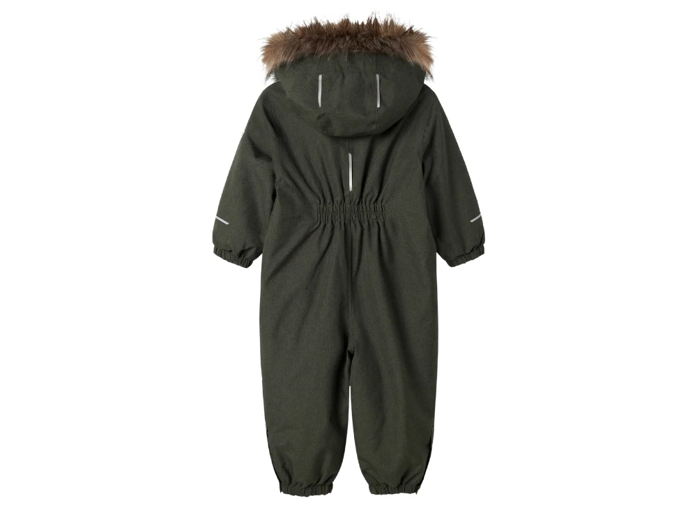 Name It flyverdragt grøn med aftagelig hætte og pelskantBarn i grøn Name It flyverdragt med aftagelig hætte og pelskantName It flyverdragt grøn set bagfraPelskant på hætte af grøn Name It flyverdragtName It TECH label på grøn flyverdragt