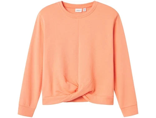 Cool kort sweatshirt i farven fusion coral med bindedetalje fra Name It.