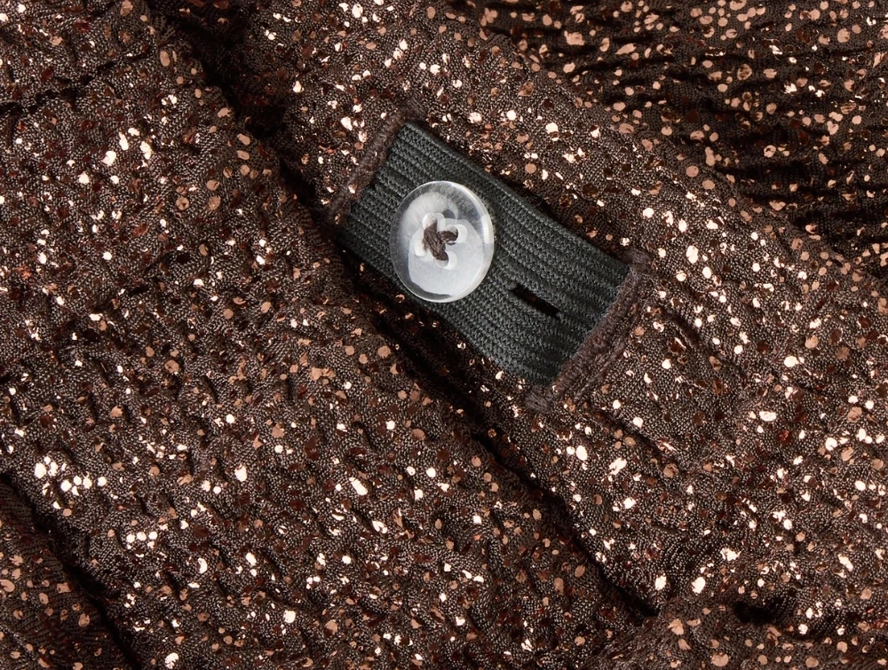 Bukserne har vide ben, som giver et flot fald og et elegant udtryk. Den skinnende glitterkvalitet gør dem oplagte til festlige anledninger eller som et sjovt hverdagslook.