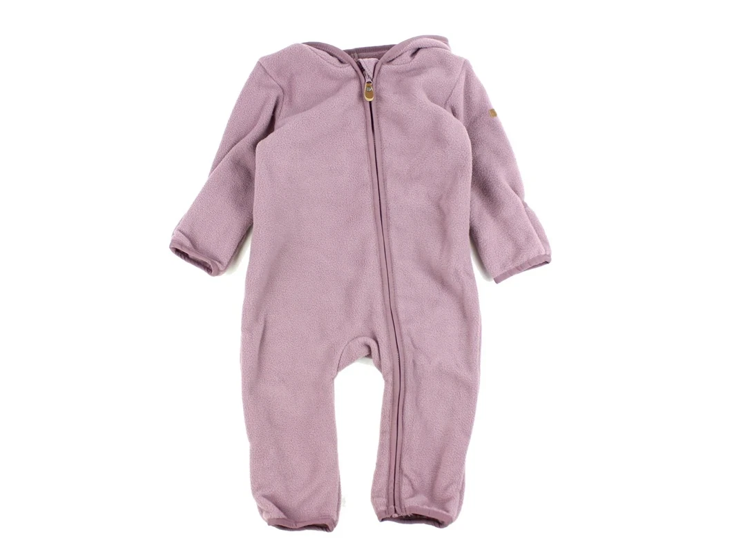Fleece heldragt med hætte i farven grape shake fra Name It.