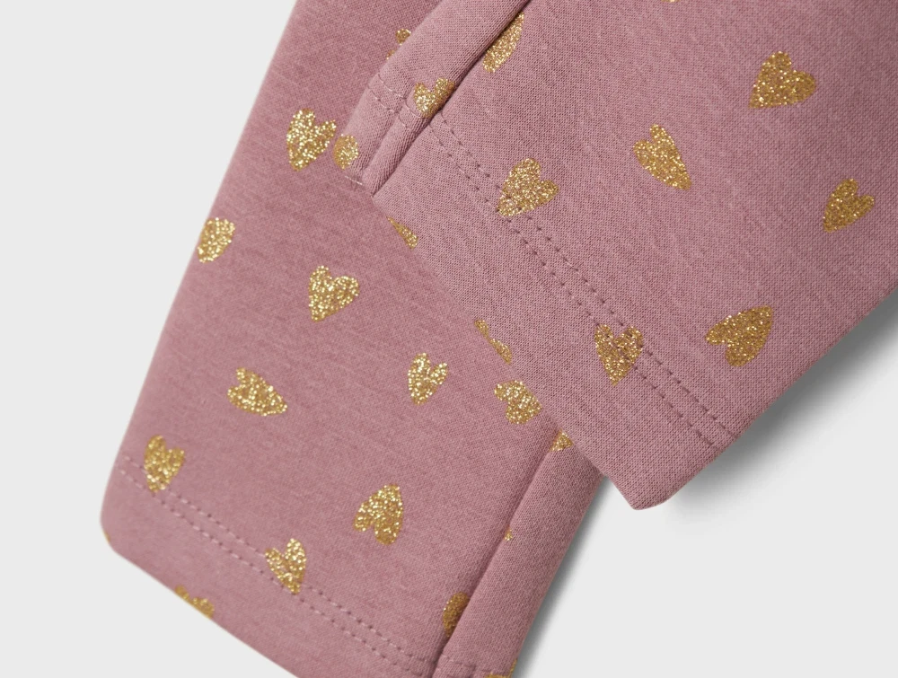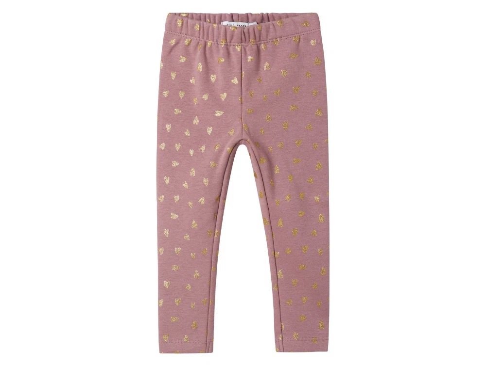 Sweatleggings i farven grape shake med guldhjerter fra Name It.
