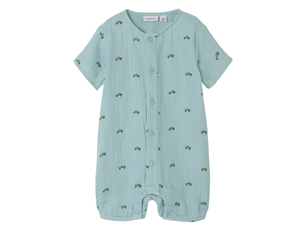 Kortærmet dragt i farven gray mist med bilprint fra Name It.