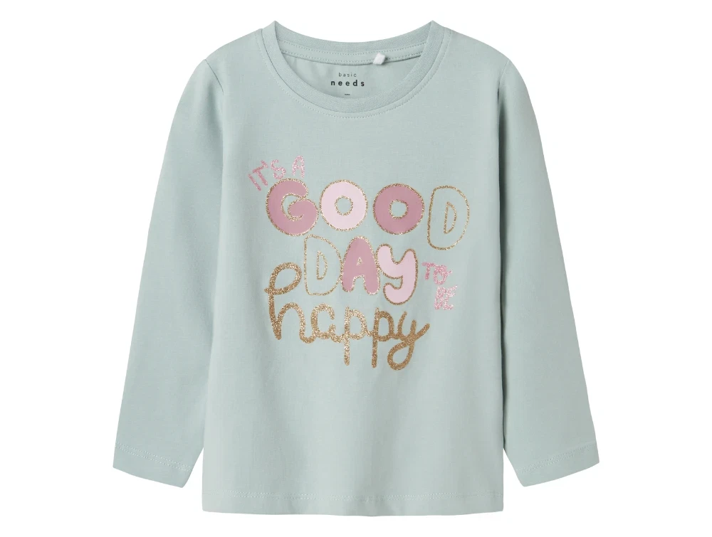 Langærmet top i farven gray mist med print og glimmer fra Name It.
