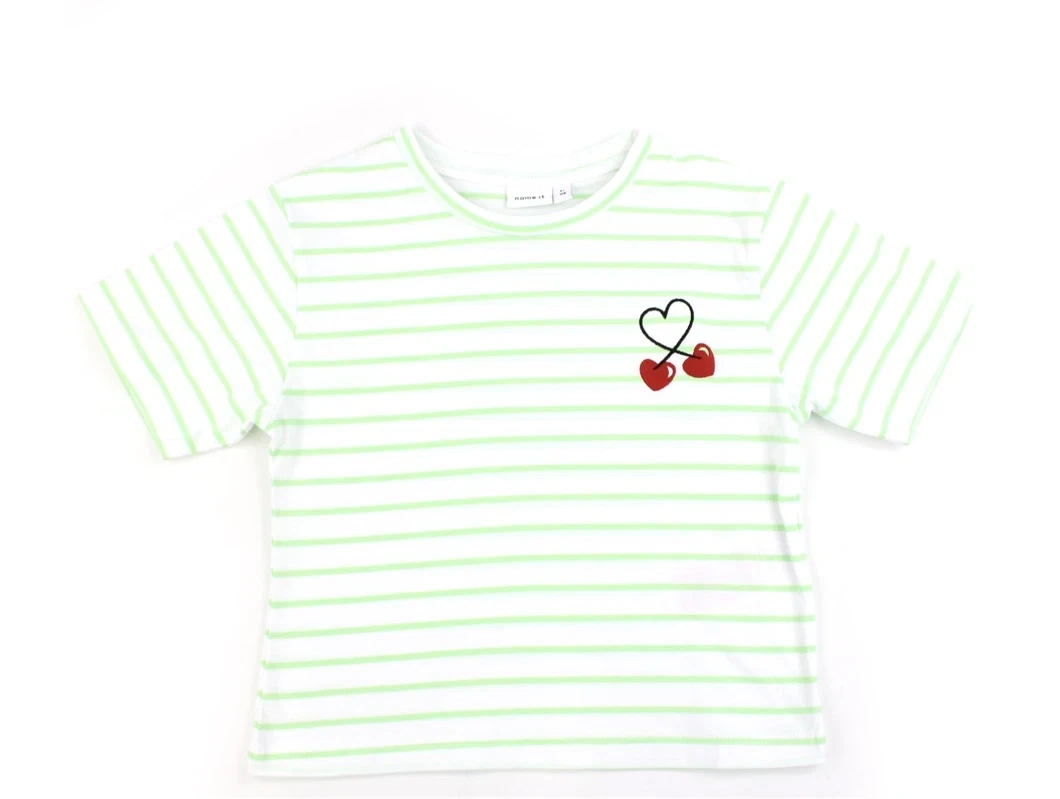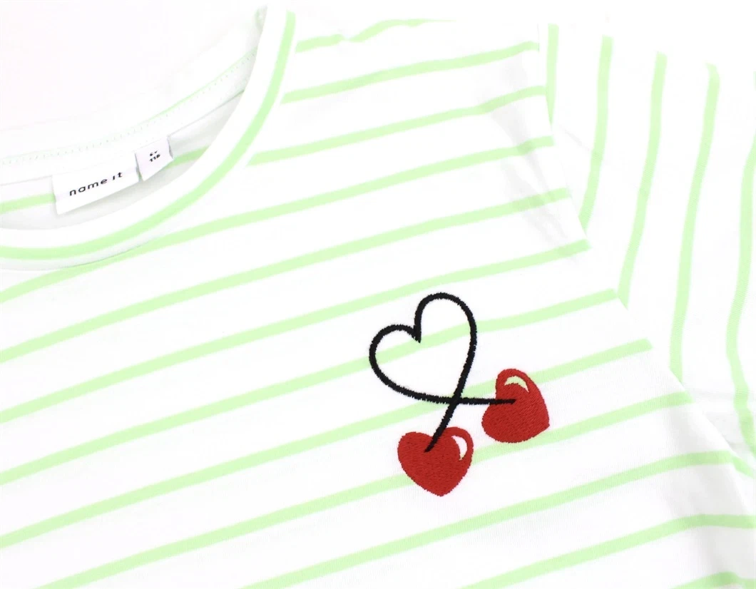 Stribet t-shirt i farven green ash med emblem fra Name It.
