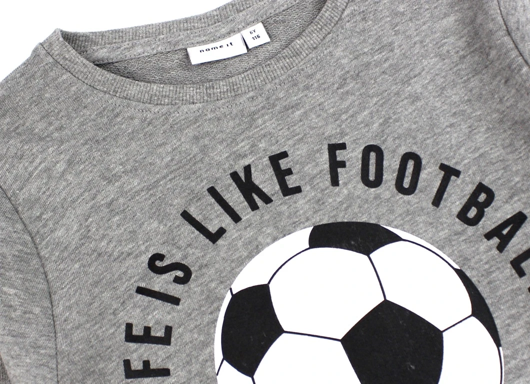 Sweatbluse i farven grey melange med fodboldprint fra Name It.