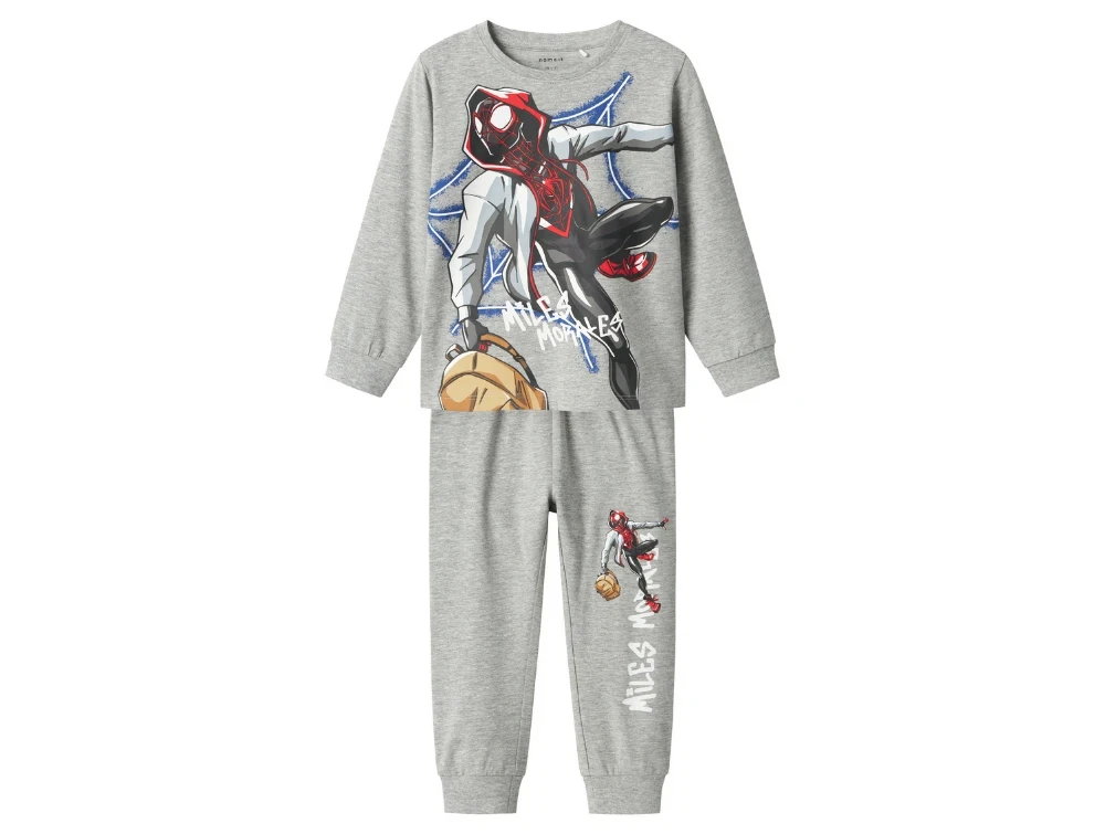 Nattøjssæt i grey melange med Spiderman-print fra Name It.