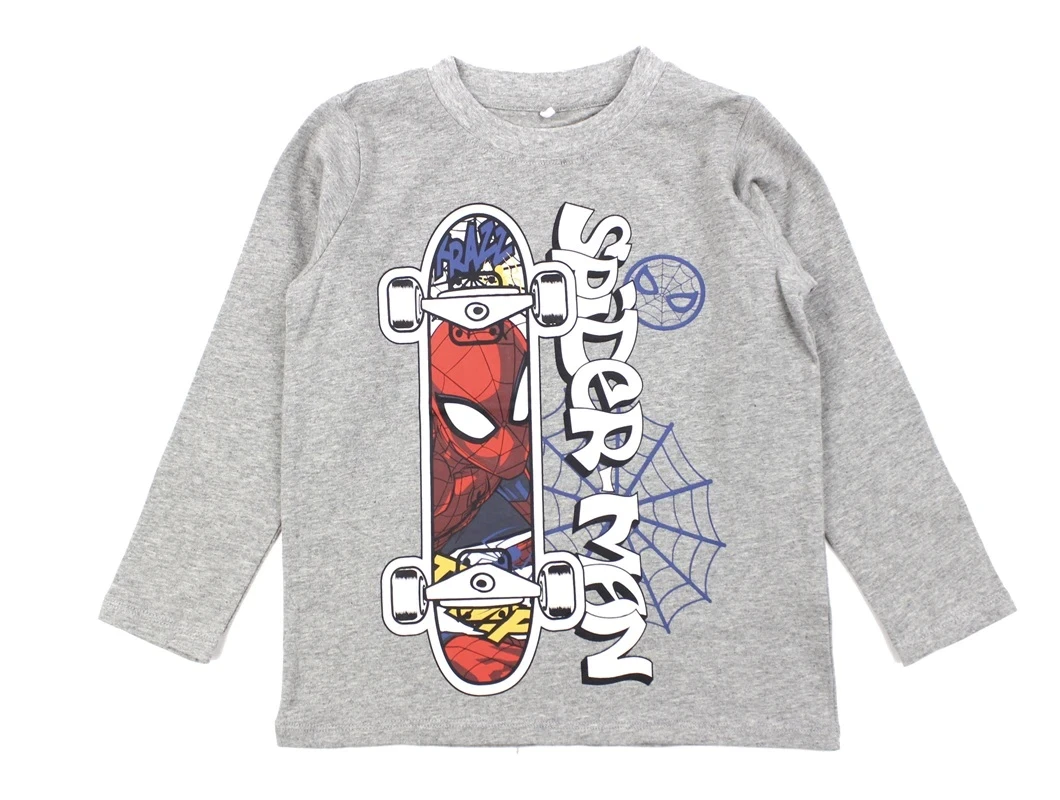 Langærmet t-shirt med Spiderman tema i farven grey melange fra Name It.