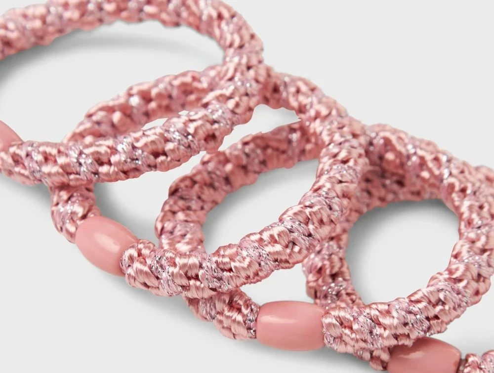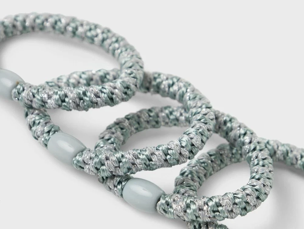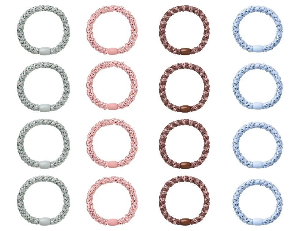 Elastikkerne har en glat overflade og fine glitterdetaljer, som tilføjer et festligt udtryk til enhver frisure. Perfekte både til hverdag og særlige anledninger.