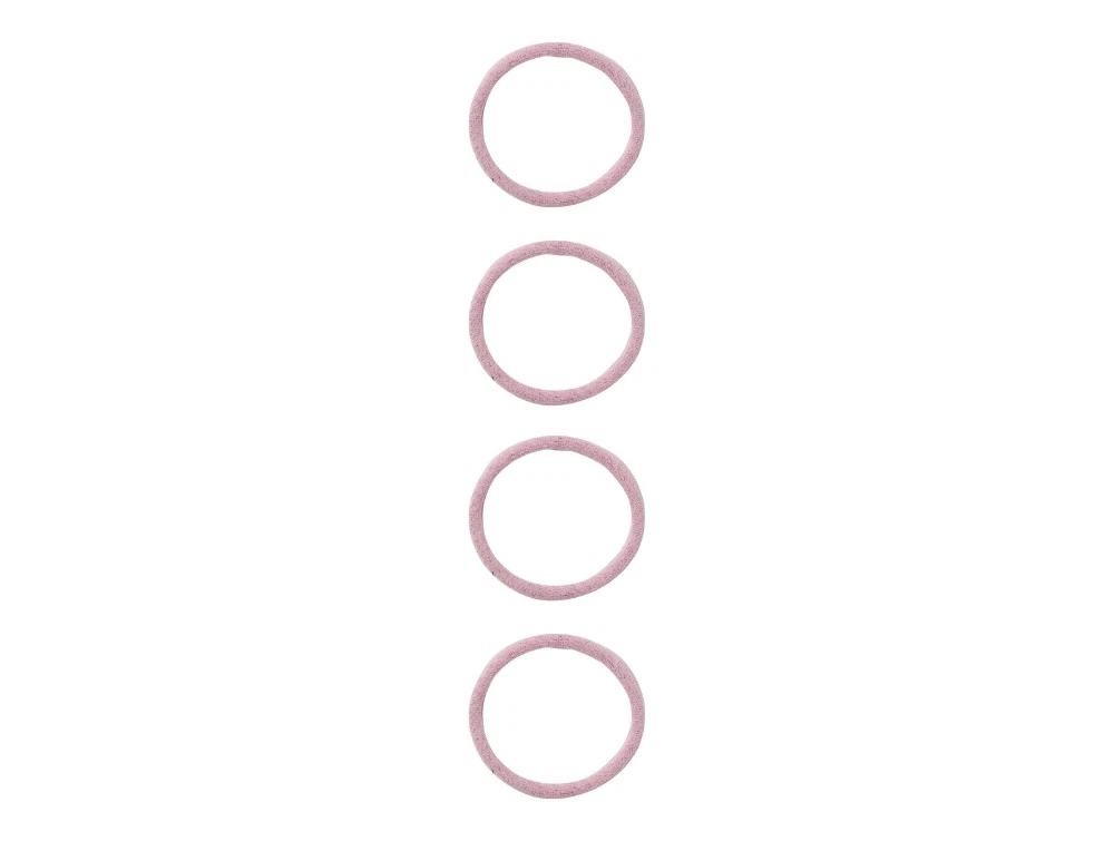 Sættet består af fire elastikker med fine glimmertråde, som giver et feminint og festligt udtryk.