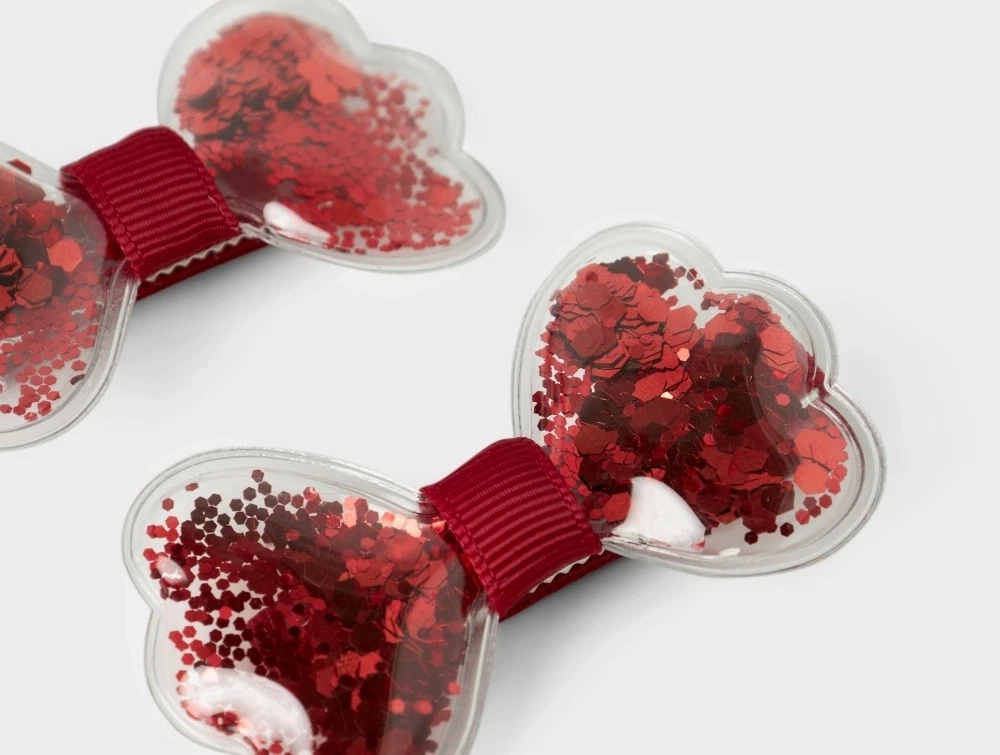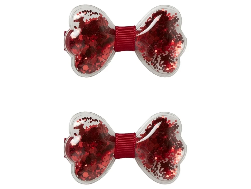 2-pack hårspænder fra Name It i rød med gennemsigtige glitter sløjfer.