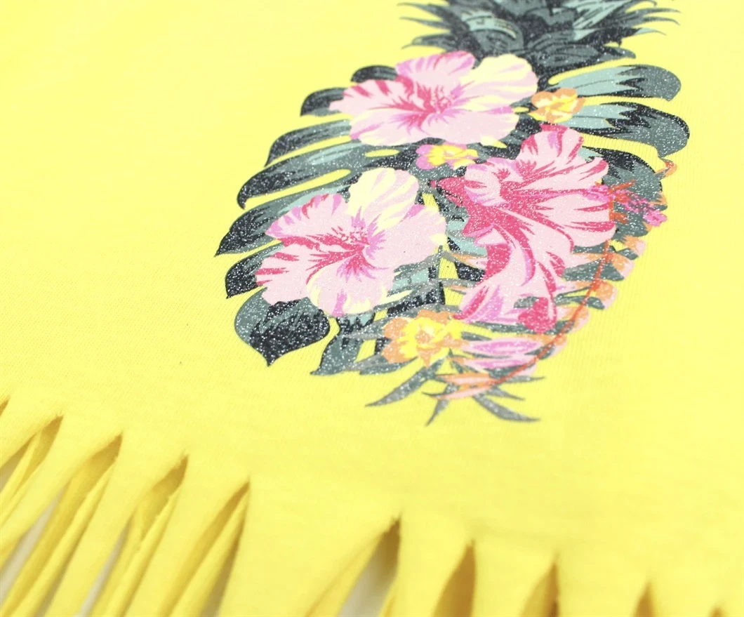 Gul stroptop med glitterprint og frynser fra Name It.