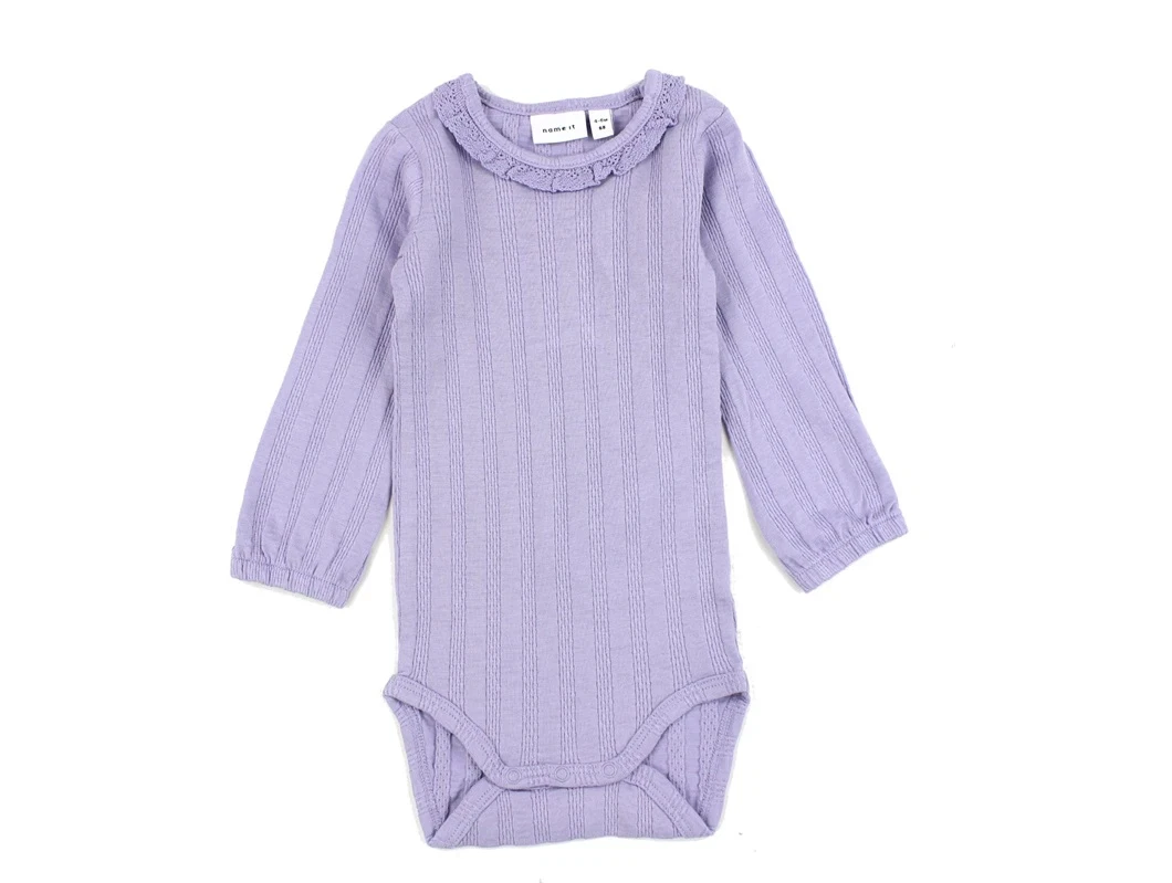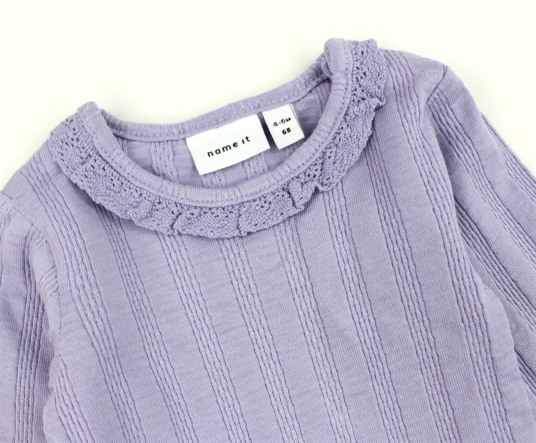Body i farven heirloom lilac med blondekant ved krave fra Name It.