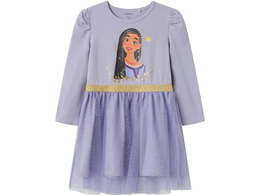 Kjole i farven heirloom lilac med Disney's Ønsket print og tylskørt fra Name It.