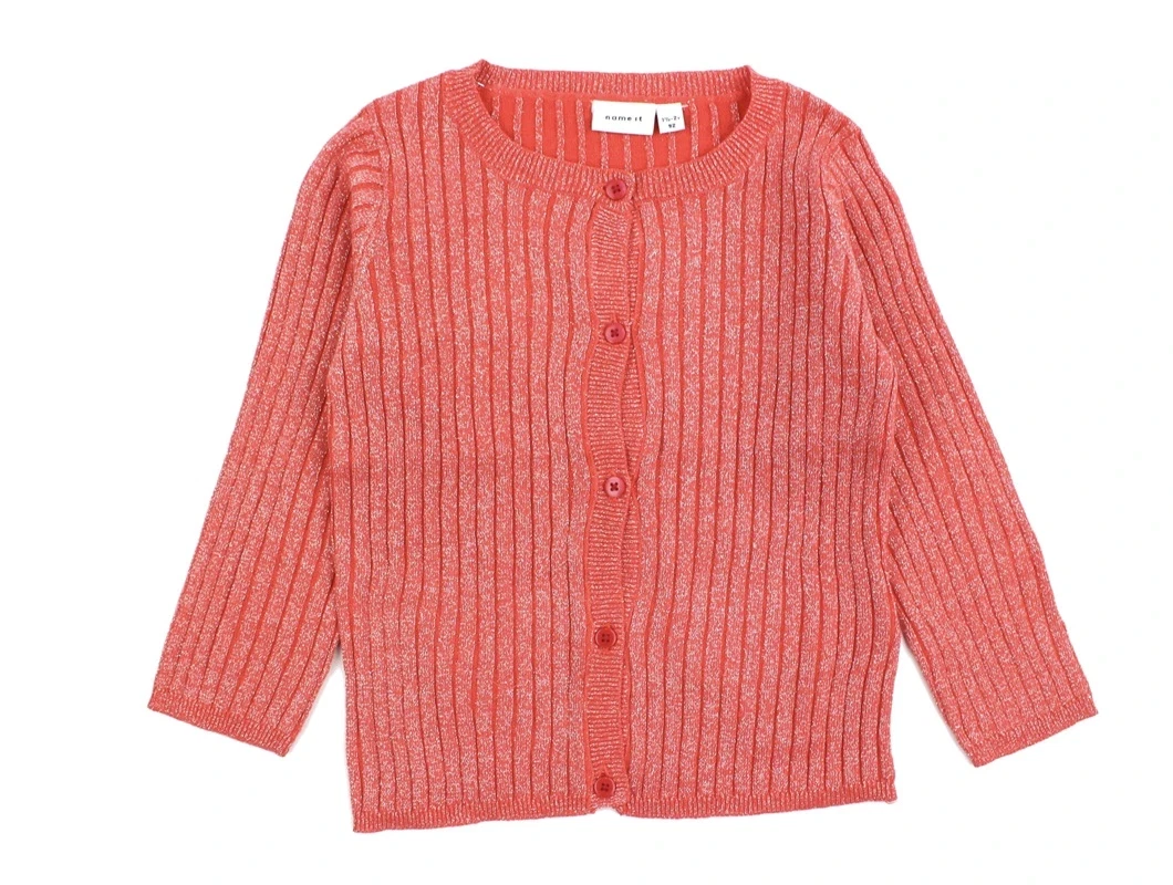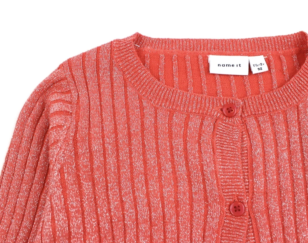Cardigan i farven hibiscus med glimmer fra Name It.