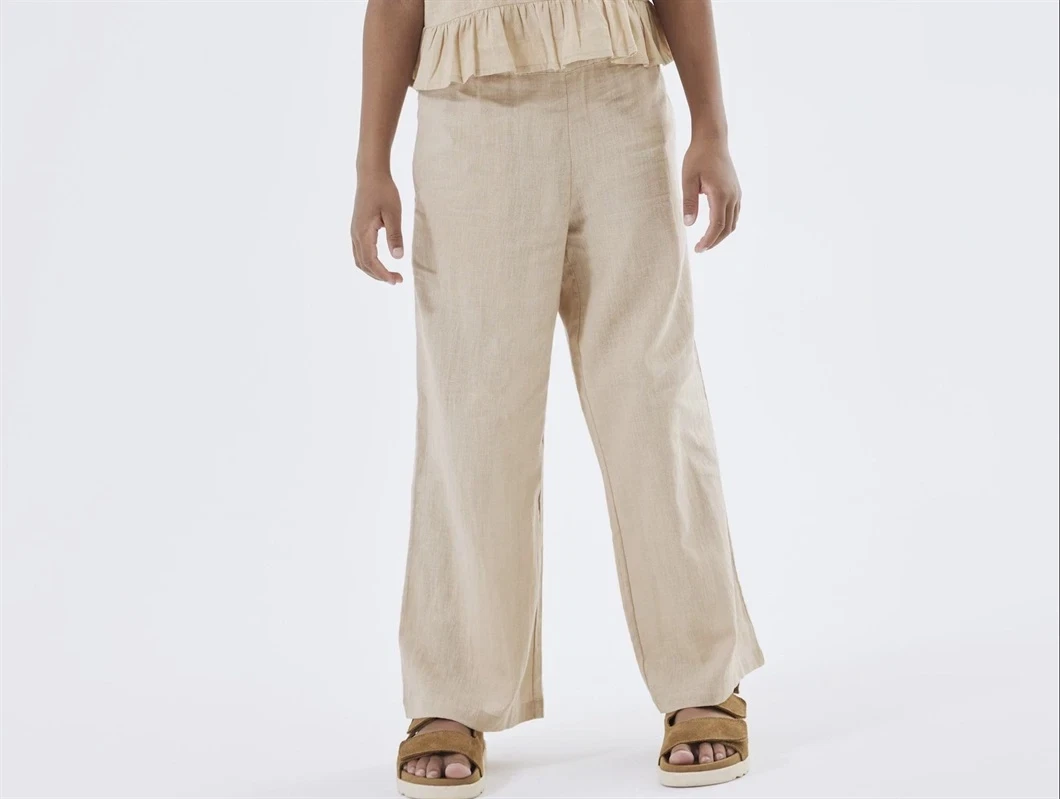 Brede bukser i hørblanding i farven humus fra Name It.