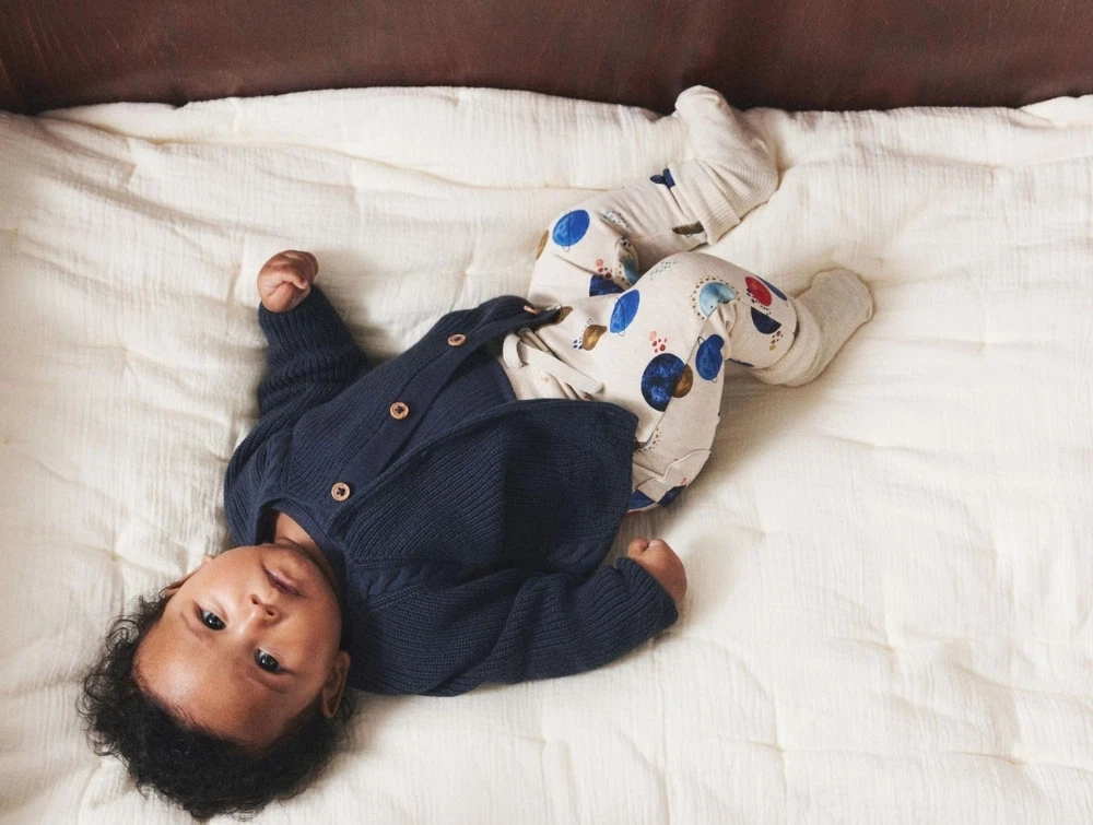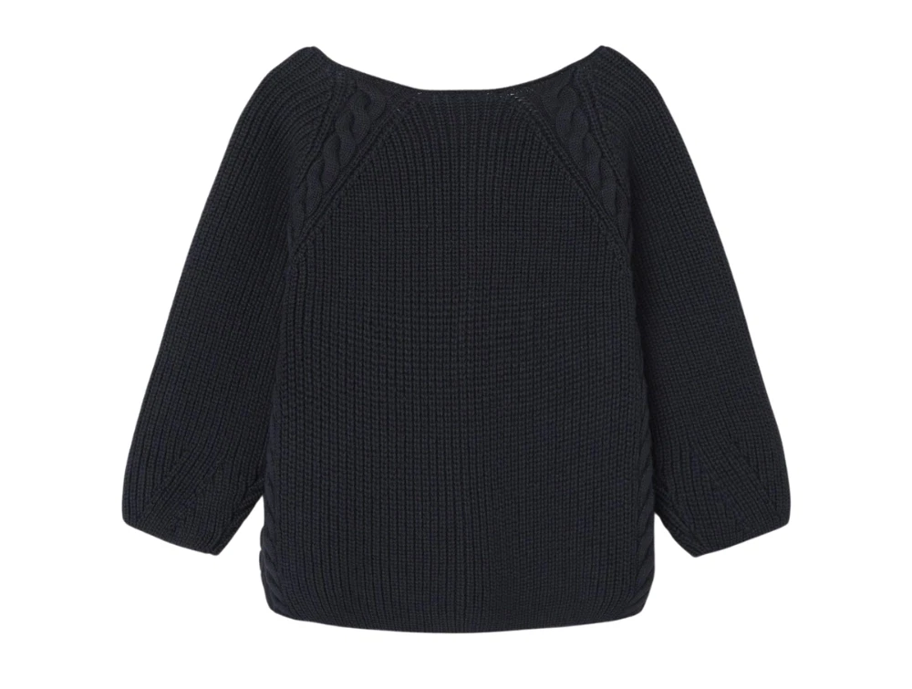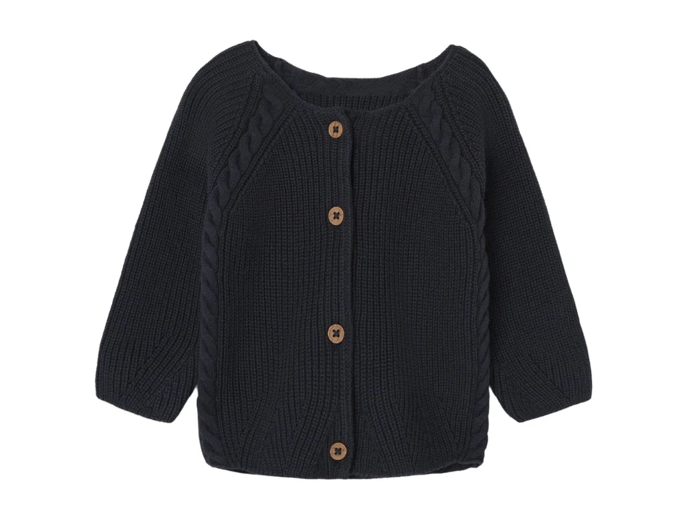 Strikcardigan i økologisk bomuld i farven india ink fra Name It.