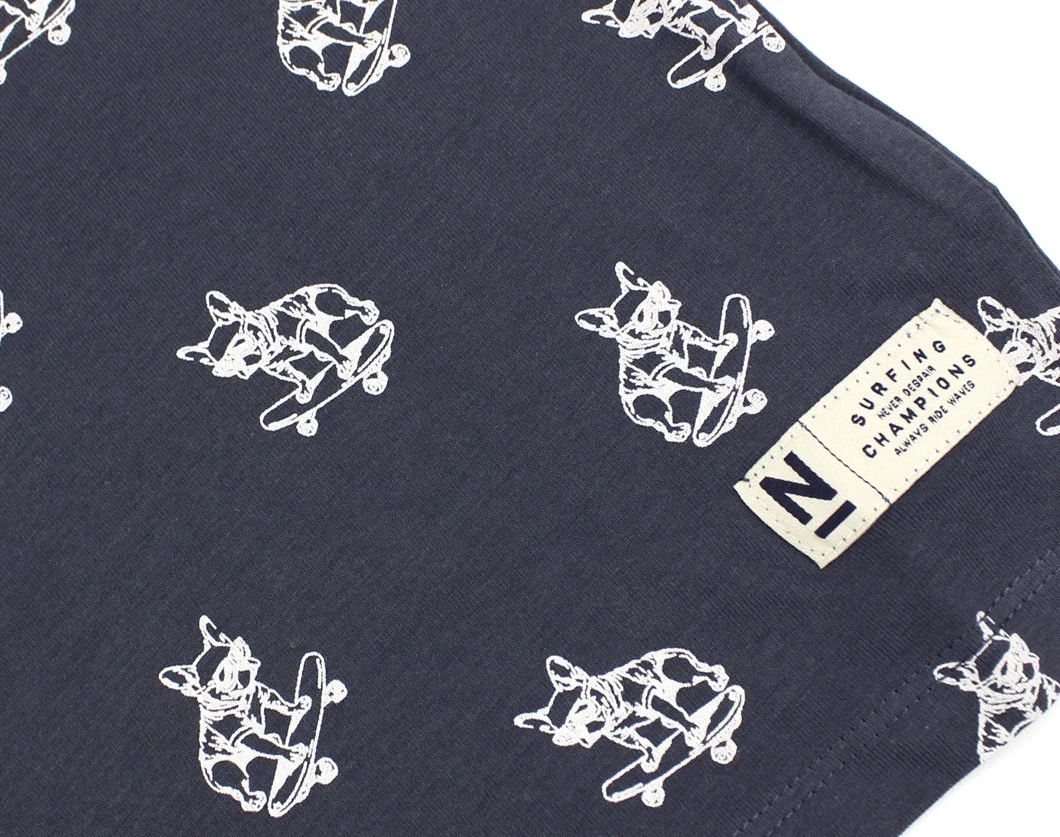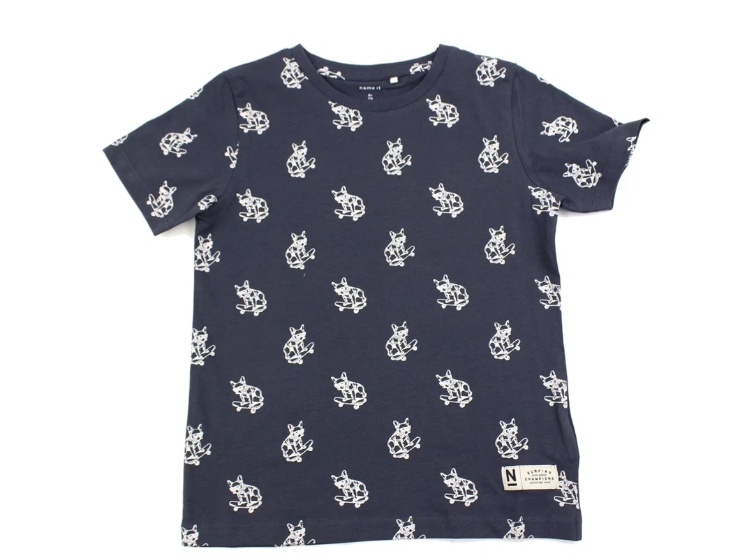 T-shirt i farven jet stream med cool print af skaterhund fra Name It.